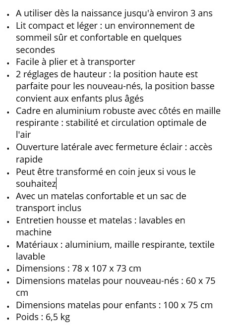 Parc Pliable Lit de voyage Pure white