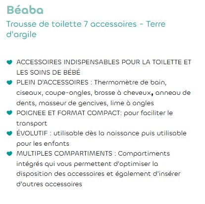 Trousse de toilette nomade 7 accessoires Terre d'argile