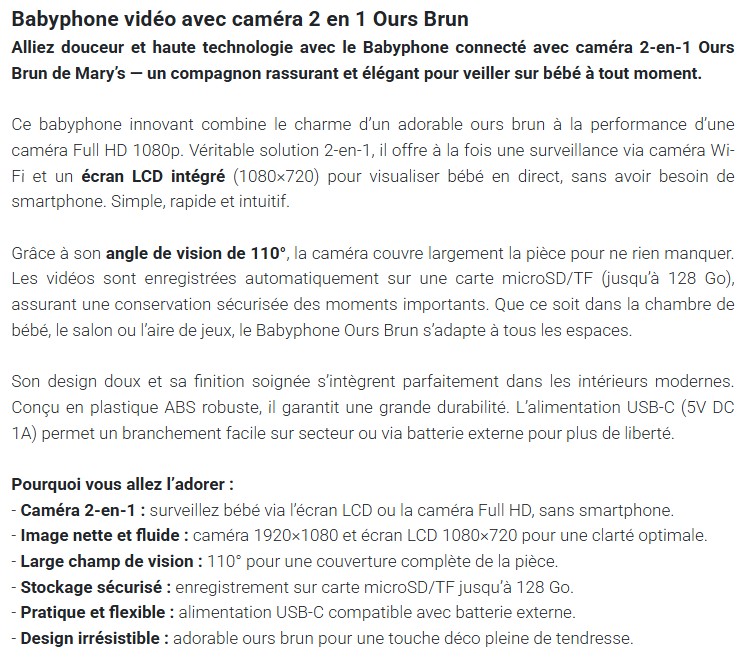 Babyphone Video wifi Brown Bear